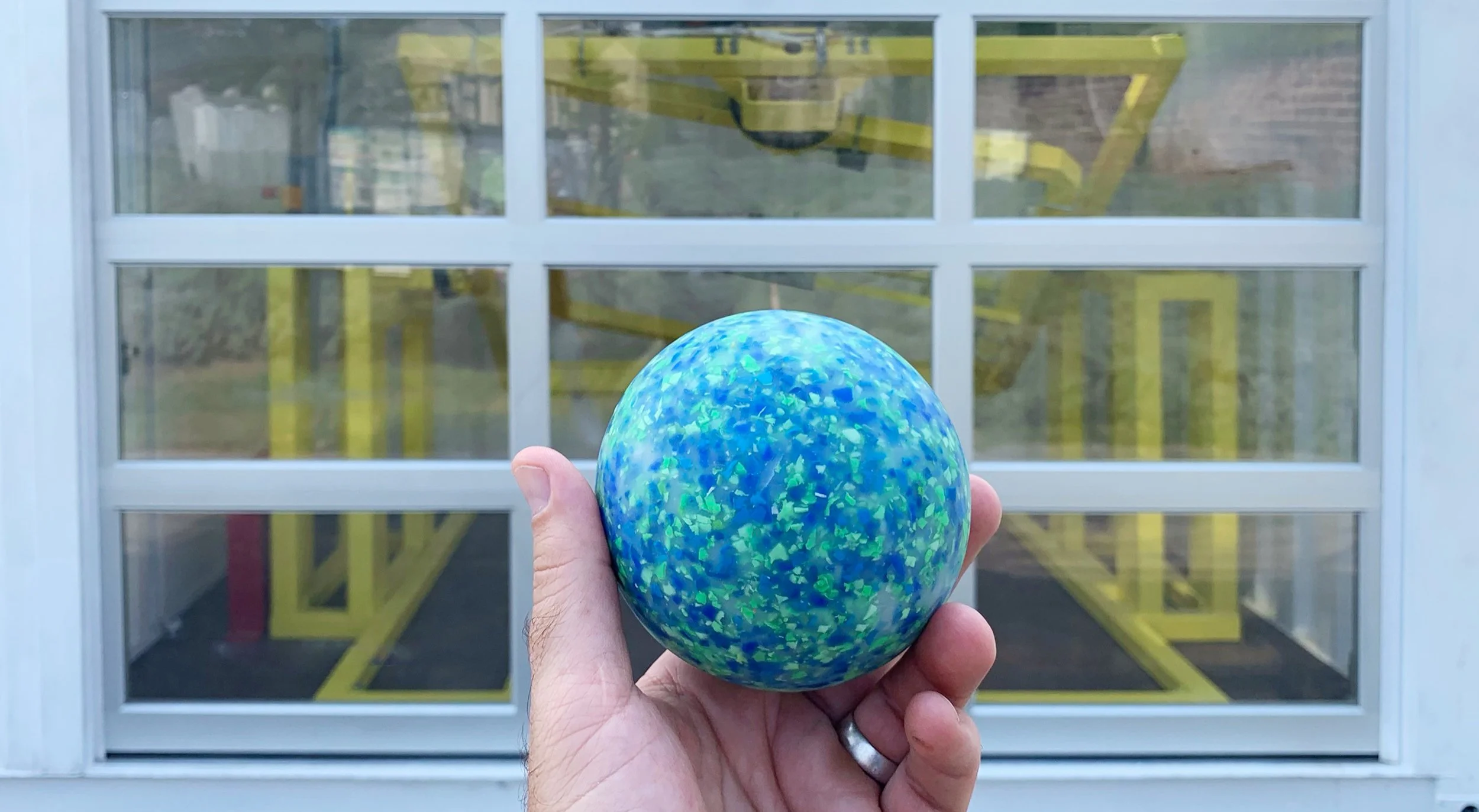 At our MicroFactory on Governors Island, NYC, witness the post-consumer single-use plastic enter our solar-powered shredder, the plastic flakes be placed into the mold, and watch the rotational molding machine work its solar-powered magic. After about 20 minutes, we’ll open up the mold and you’ll see a freshly made Globe.